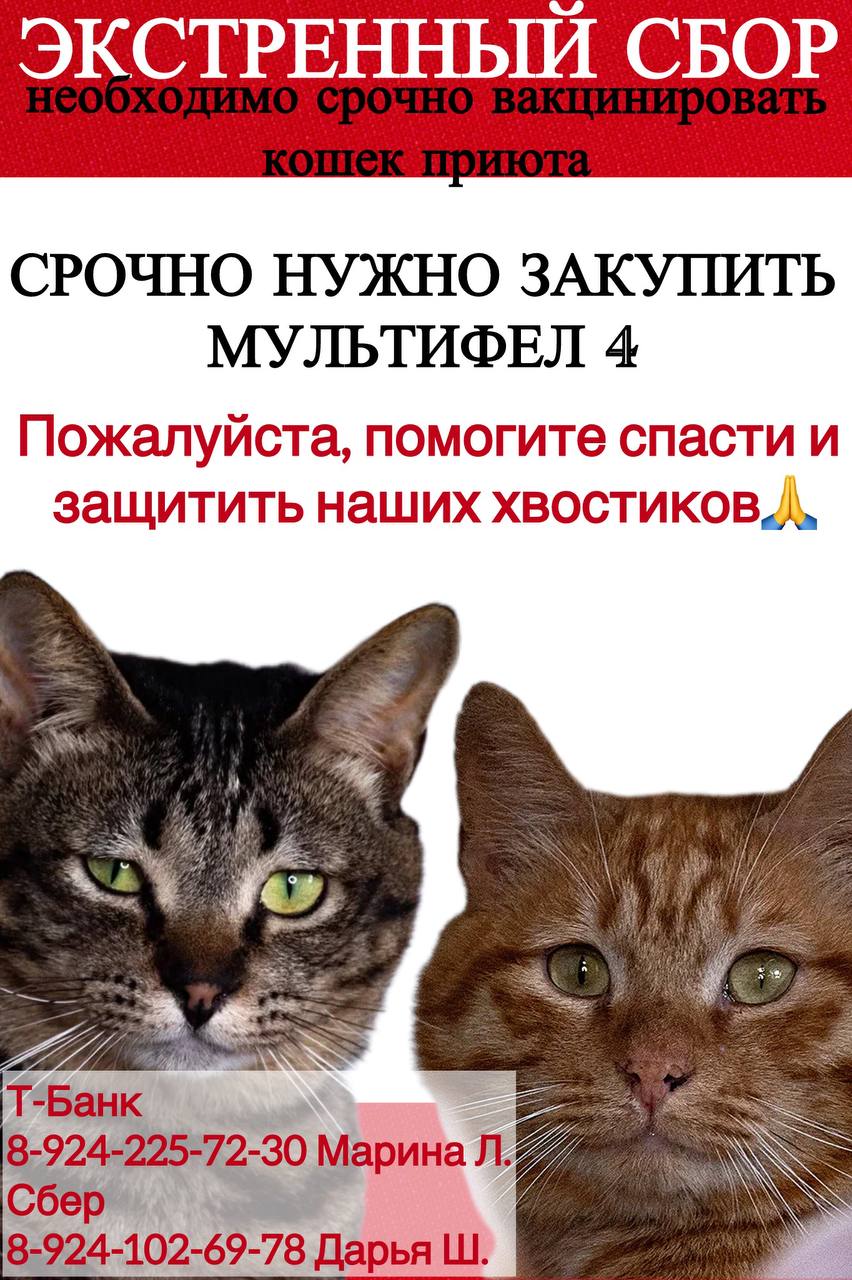 Друзья, Найдик скончался от панлейкопении. Что это значит для нас? Значит, что более 40 кошек в смертельной опасности😭 и если мы экстренно не вакцинируем всех кошек приюта, они умрут! У приюта нет денег, совсем. Вообще нет. На каждого кота нужно две вакцины, одна стоит около 550 рублей. В приюте живет 40 котов. Обращаемся к каждому из вас🙏 Пожалуйста, помогите нам 🙏